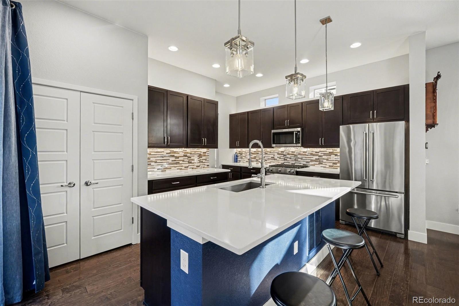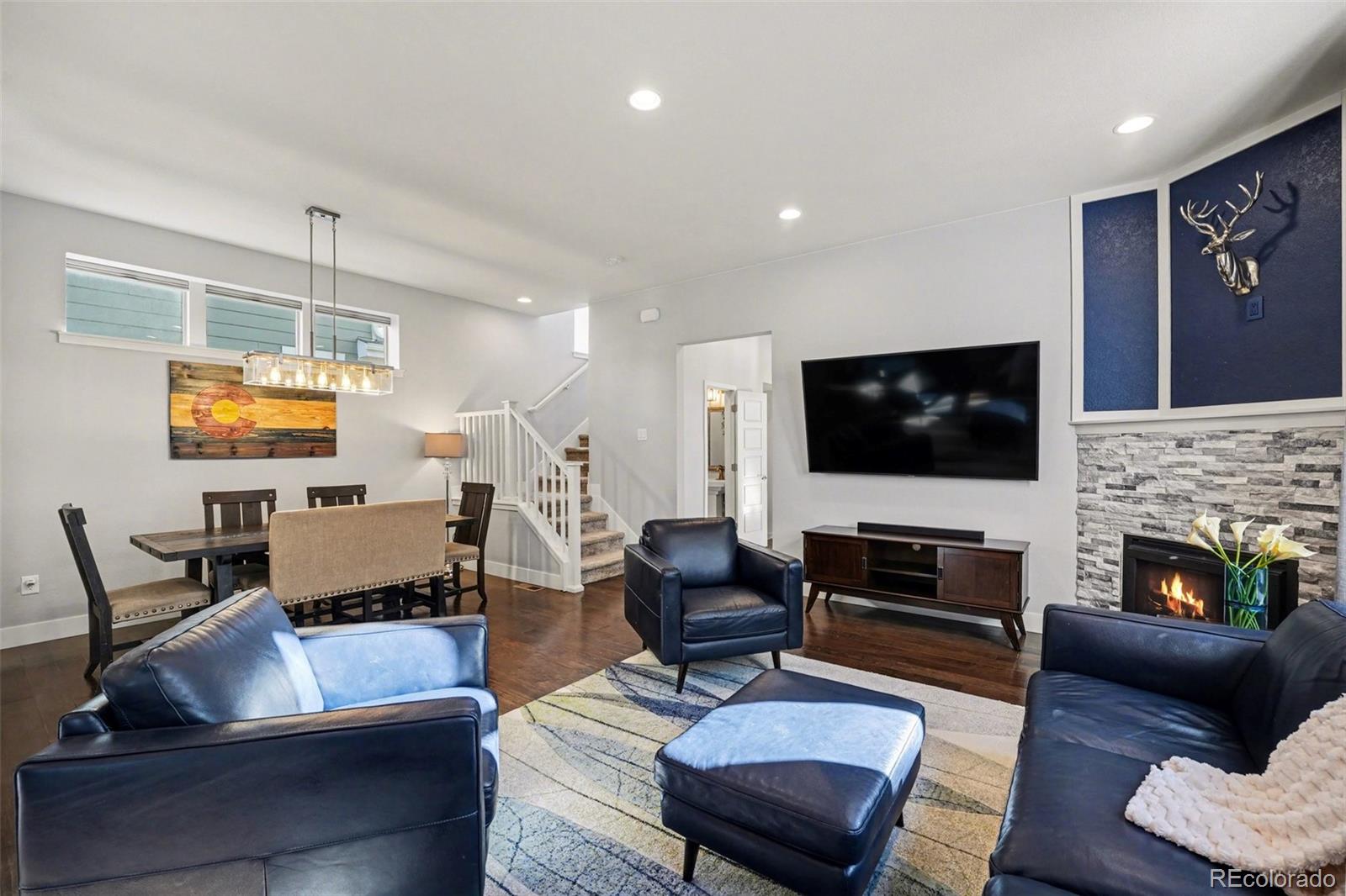 Welcome to 5969 Hanover Street, a distinguished residence nestled in the heart of Northfield. This exquisite property offers 2,566 finsihed square feet of thoughtfully designed living space (with additional unfinished square footage of an expansive storage area in the basement), boasting four bedrooms and four bathrooms, ideal for those seeking both comfort and sophistication. Upon entering, you are greeted by a beautiful open floor plan that seamlessly integrates the living, dining, and kitchen areas, perfect for both entertaining and everyday living. The home is uniquely positioned to face a coveted open space, providing serene views and a sense of tranquility. The gourmet chef's kitchen is a culinary enthusiast's dream, equipped with top-of-the-line appliances and ample counter space. The main level also features a stunning home office with French doors, offering a private and productive workspace. The charming front porch adds to the home's inviting exterior, while the two-car attached garage provides convenience and security. Upstairs, the primary bedroom is a true retreat, offering breathtaking mountain views and a spa-inspired en-suite bathroom. Two additional bedrooms are located on the upper level, providing comfortable accommodations for family or guests. Updated lighting throughout the home enhances its modern appeal. The finished basement is a versatile space, featuring a family room perfect for relaxation and entertainment, as well as a well-proportioned guest bedroom. A mudroom with a work station adds functionality to the home, catering to the needs of a busy household. Outside, the beautiful side yard is adorned with a pergola and mature landscaping, creating an idyllic setting for outdoor gatherings and leisure. This property is a rare find, combining elegance, functionality, and a prime location. Discover the perfect blend of luxury and comfort at 5969 Hanover Street.